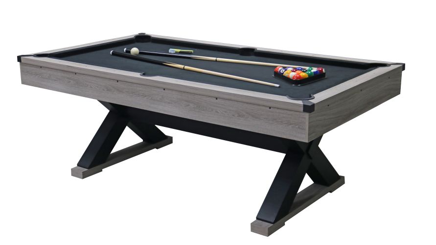 84" Pool Table with Billiard Balls, Cues, Pool Cue Chalk, Cleaning Brush, X-Legs, Black Cloth, Rustic Grey,84.1"L x 46.5"W x 32"H