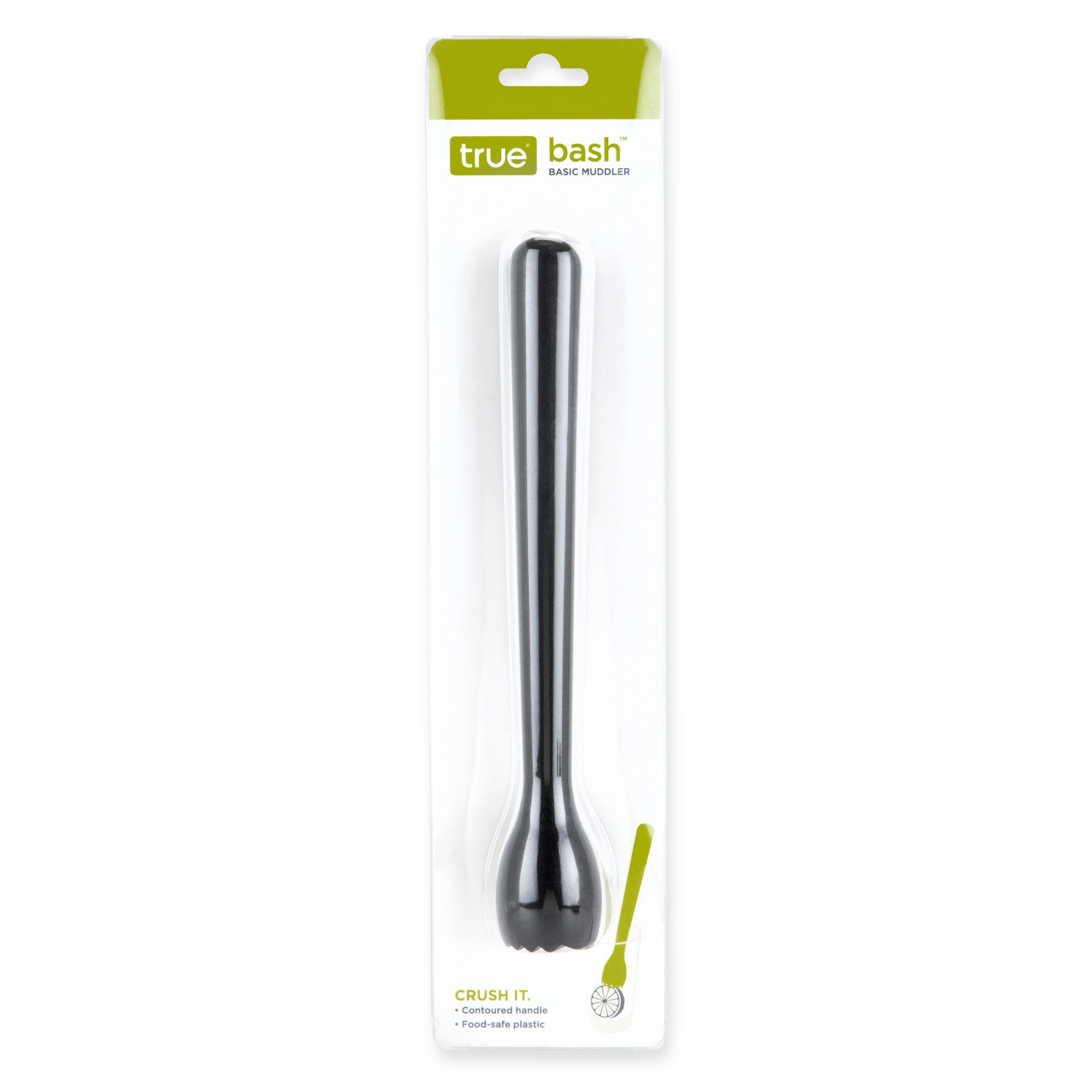 Enhance your bartending skills with our Bash Muddler, a quintessential tool for any cocktail enthusiast. Built to last, this muddler measures 8.25 inches in length and is a classic black color - a sleek addition to your home bar, bar cart, or kitchen, no matter your decor style. It is part of a muddler for cocktails set – a must-have among bar tools and cocktail accessories. The muddler is crafted from food-safe plastic, ensuring that your cocktails remain uncontaminated and taste just as they should. It is designed with a contoured handle and a serrated base, perfect for crushing fruits, spices, and more. The teeth at the base make quick work of citrus rinds or herbs, allowing you to extract the full flavor from your ingredients. This makes it an ideal drink muddler, fruit crusher, and a mojito muddler. The bar muddler tool is not just effective but also easy to handle. The smooth curves and ergonomic handle make it easy to use, ensuring you get the maximum juice and flavor out of your ingredients. No need to worry about a difficult clean-up – simply pop it in the dishwasher and it's ready for your next cocktail creation.