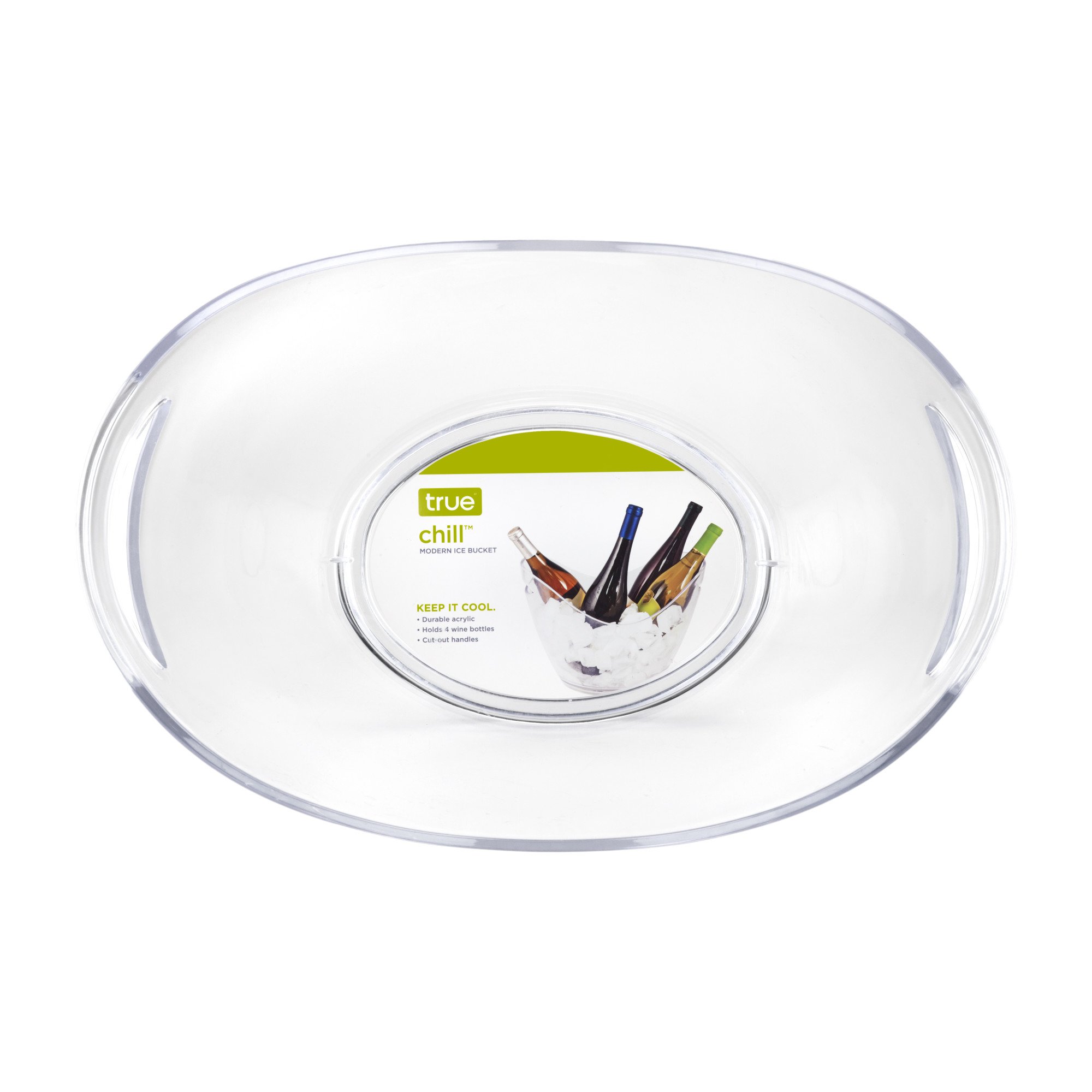 Roomy, featherlight, and stylized, this modern ice bucket comes party-ready. It’s made of durable polystyrene with cut-out handles allowing for easy mobility. Low-cut sides make it easy to swoop in and grab another bottle. Clear ice bucket Holds 5 standard wine bottles 14" by 10.25" This streamlined, stylish ice bucket is perfect for keeping chilled wine cool and close whether on the dinner table, at a wedding, or by the beach. True crafts beautiful, functional wares for the modern host--entertain in style with basics done better.