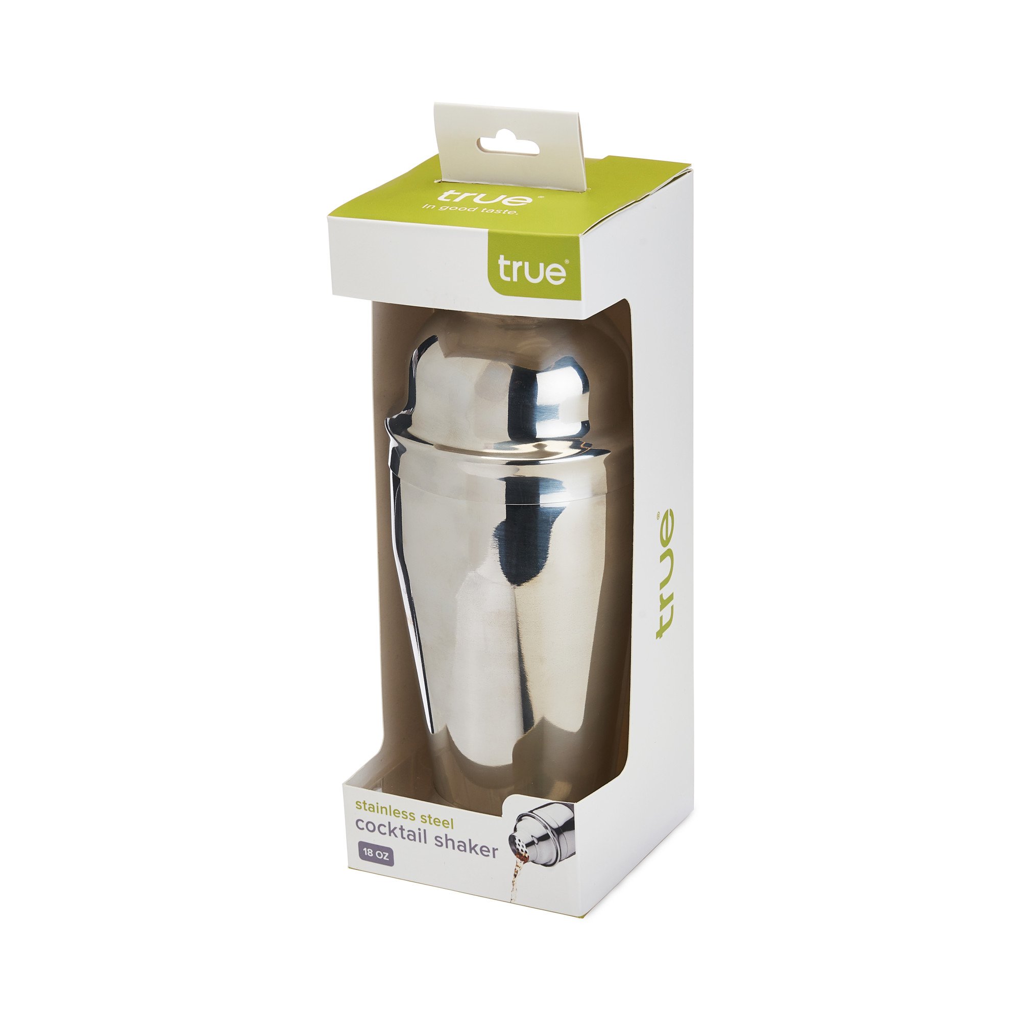 The stainless steel curves of the 18-ounce Contourâ„¢ Cocktail Shaker fit into your palm or stand out on the bar, while the tight-fitting cap and built-in strainer let you shake and pour with effortless professionalism. Perfect for the seasoned bartender, or anyone who wants to feel like one. Holds 18 oz Stainless steel Includes strainer & jigger cap