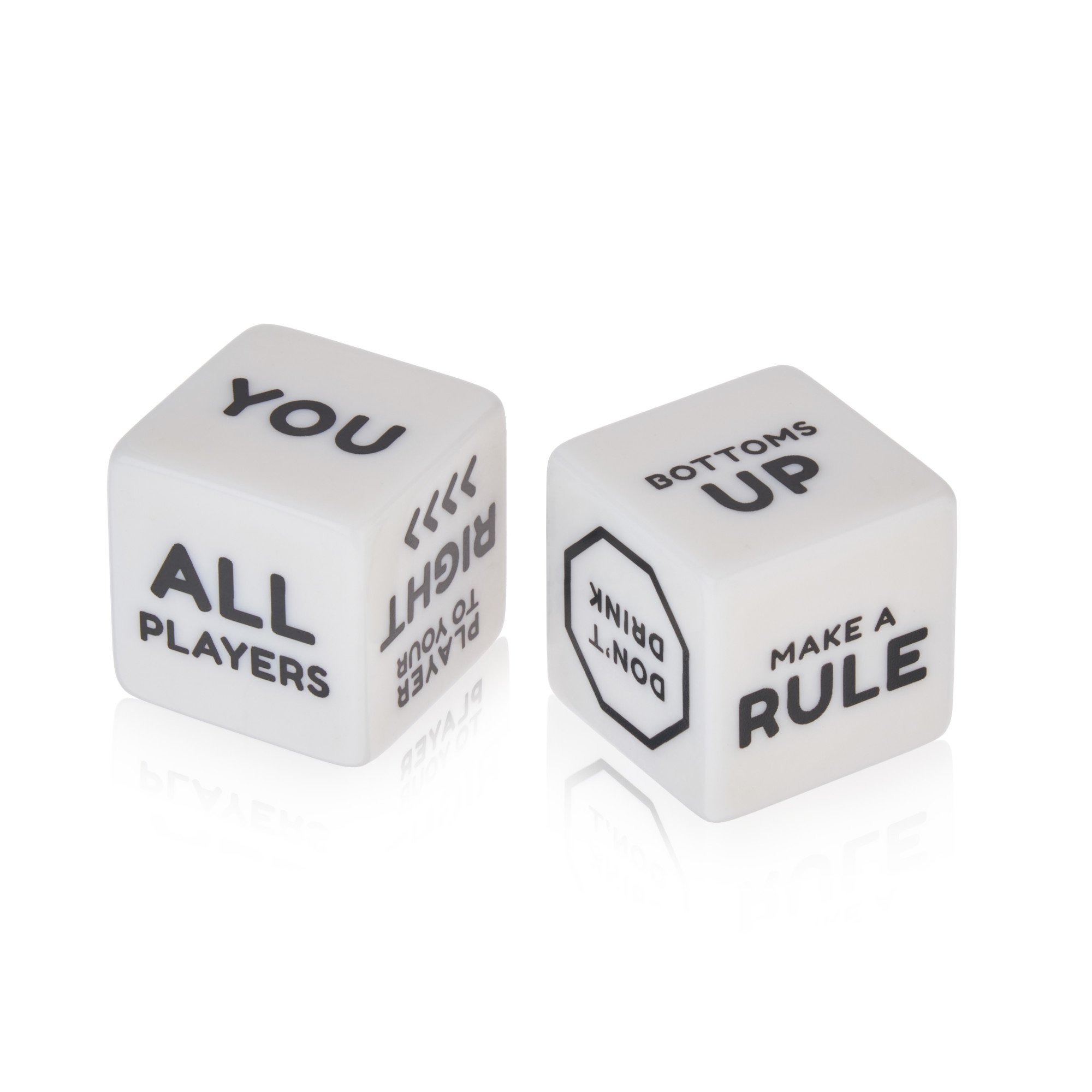 Add even more fun to your party nights when you play this dice game! One die decides the Who, the other decides the How Much. Just shake it up, and drink it down.
