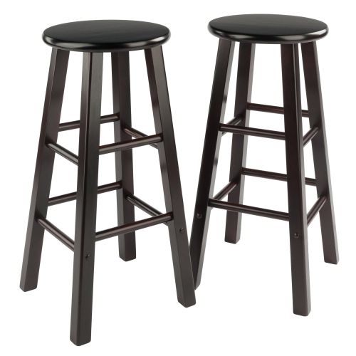 Spruce up your kitchen; breakfast nook; or den with this Winsome Wood Element Bar Stool Set. Finished in a polished espresso finish; these stools feature a simplicity of design blending seamlessly with any decor from modern to traditional. Crafted from study solid wood these bar stools are designed to help you coordinate with a wide variety of furnishings. The square legs and round seat have a sturdy built offering a supportive foundation and hold a static weight of 220lbs. Featuring 8 crossbars; high and low on all four sides; for stability and strength while also serving as convenient footrests; making this stool not only functional but also comfortable. Ideal for extra seating; accommodating guests at gatherings and ideal for everyday use. These 13.58'W x 13.58'D can easily be tucked away when not in use. Like most Winsome stools; the Element collection is available in multiple finishes and like most Winsome stools are available in both bar and counter height. Conveniently packed and shipped in one box; that includes the hardware necessary for assembling. Replacement part request can be submitted directly to the manufacturer within 60 days from date of purchase.