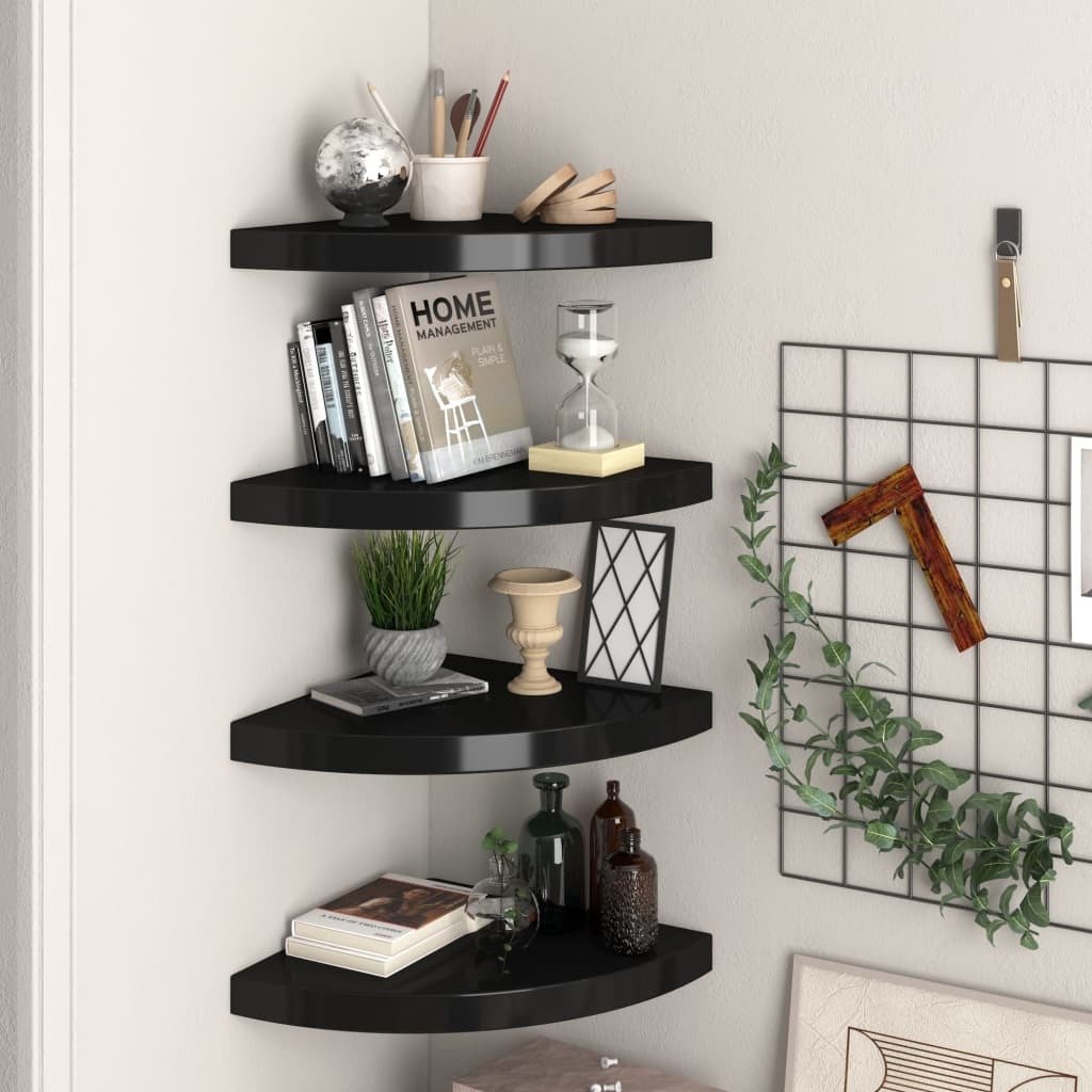 Home > Floating Corner Shelves 4 pcs Black 13.8"x13.8"x1.5" MDF