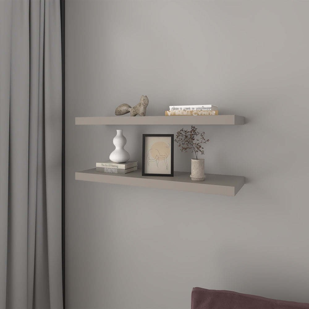 Elevate your living room decor with the Floating Shelf Dallas, a stylish set of two shelves designed to offer both functionality and elegance. Crafted from taupe manufactured wood, these floating shelves provide the perfect platform for showcasing your favorite decor, books, or collectibles. The sleek design seamlessly blends with any interior style, making it an ideal choice for modern, minimalist, or contemporary spaces.Dimensions: Height: 1.5'Width: 31.5' Depth: 9.8'Furniture Type: Ready to assemble (full assembly required).Certifications: CARB phase II compliant – TSCA Title VI Compliant.Warranty: 1-year warranty coverage in wooden parts- 1-year warranty coverage in hardware pieces since its manufacturing date is found in the lot number printed in the product box.Shipment details: Free shipping to the 48 contiguous states - delivery time: Between 2 and 5 days, depending on the customer's location, season, and weather factors.Other details: This product does not include decorative or background elements; Check that the box is in good condition and well packed and check with the help of the manual that the corresponding parts have been included; For more information regarding warranty, shipment details, cancellations, returns & replacement parts go to the bottom section of our website to learn more; Installation & Assembly Instructions included.