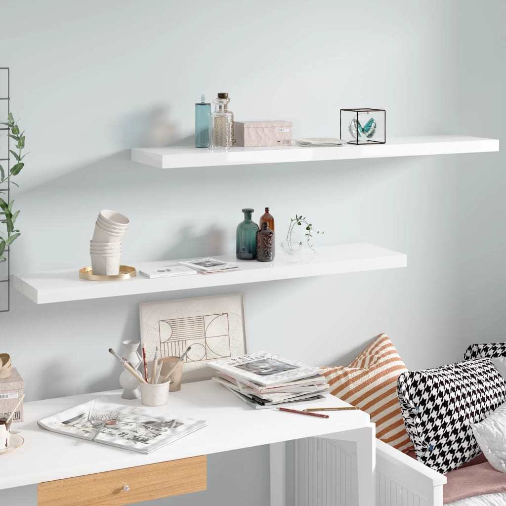 Home > Floating Wall Shelves 2 pcs High Gloss White 47.2"x9.3"x1.5" MDF