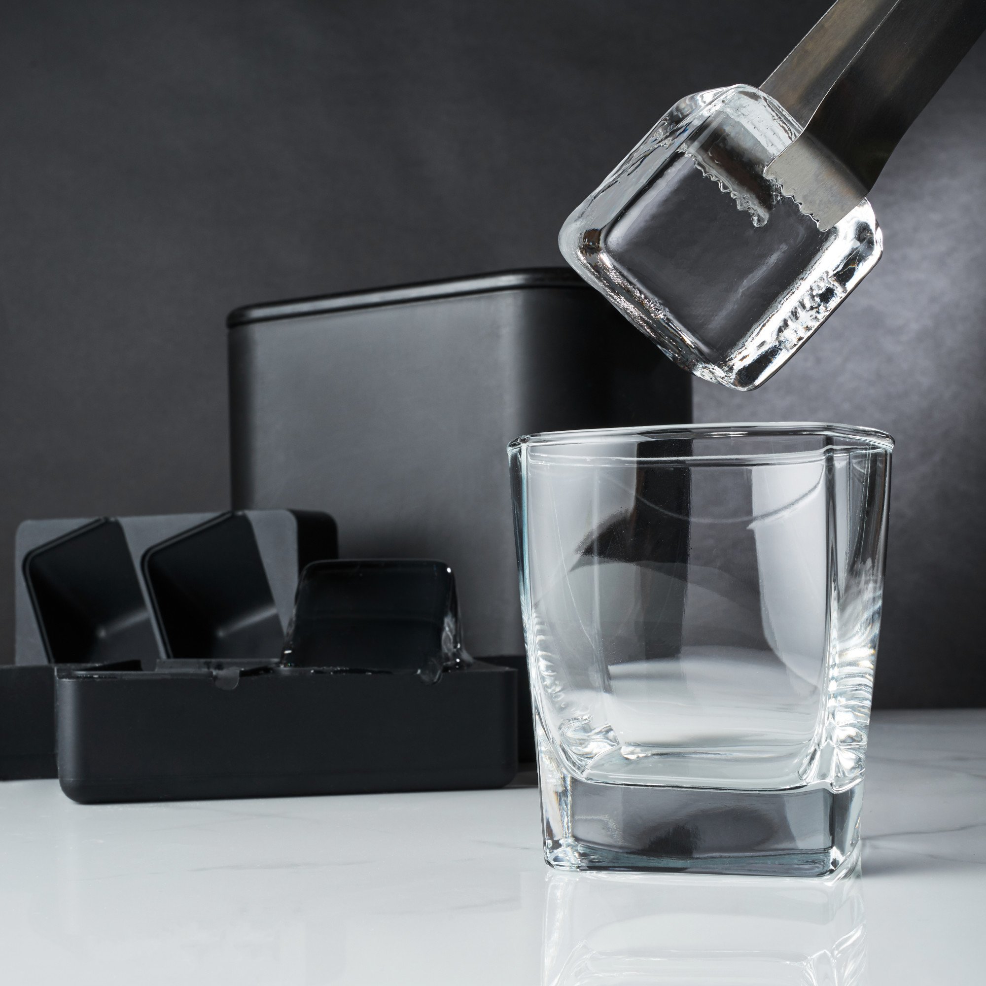 Craft cocktails deserve craft ice. Make exquisite, crystal-clear ice cubes at home with this clear ice maker for drinks that look and taste better. Designed to freeze slowly for perfectly transparent ice, this mold yields 2 square ice cubes that are ideal for an Old Fashioned or a pour of Scotch. Makes 2 large ice cubes. Made from silicone, styrofoam, and plastic. Mold is food-safe and dishwasher-safe.