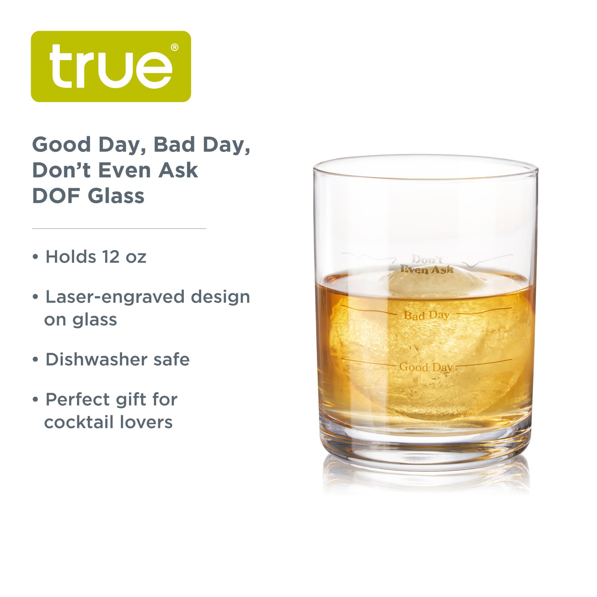 One of the most important pieces of bar drinkware you can own, a rocks glass is the perfect double-old fashioned glass, whiskey tumbler and more. The 12 oz capacity provides plenty of room for robust cocktails, and the clever laser engraved design lets everyone know what kind of day you’re having: good, bad, or ugly.