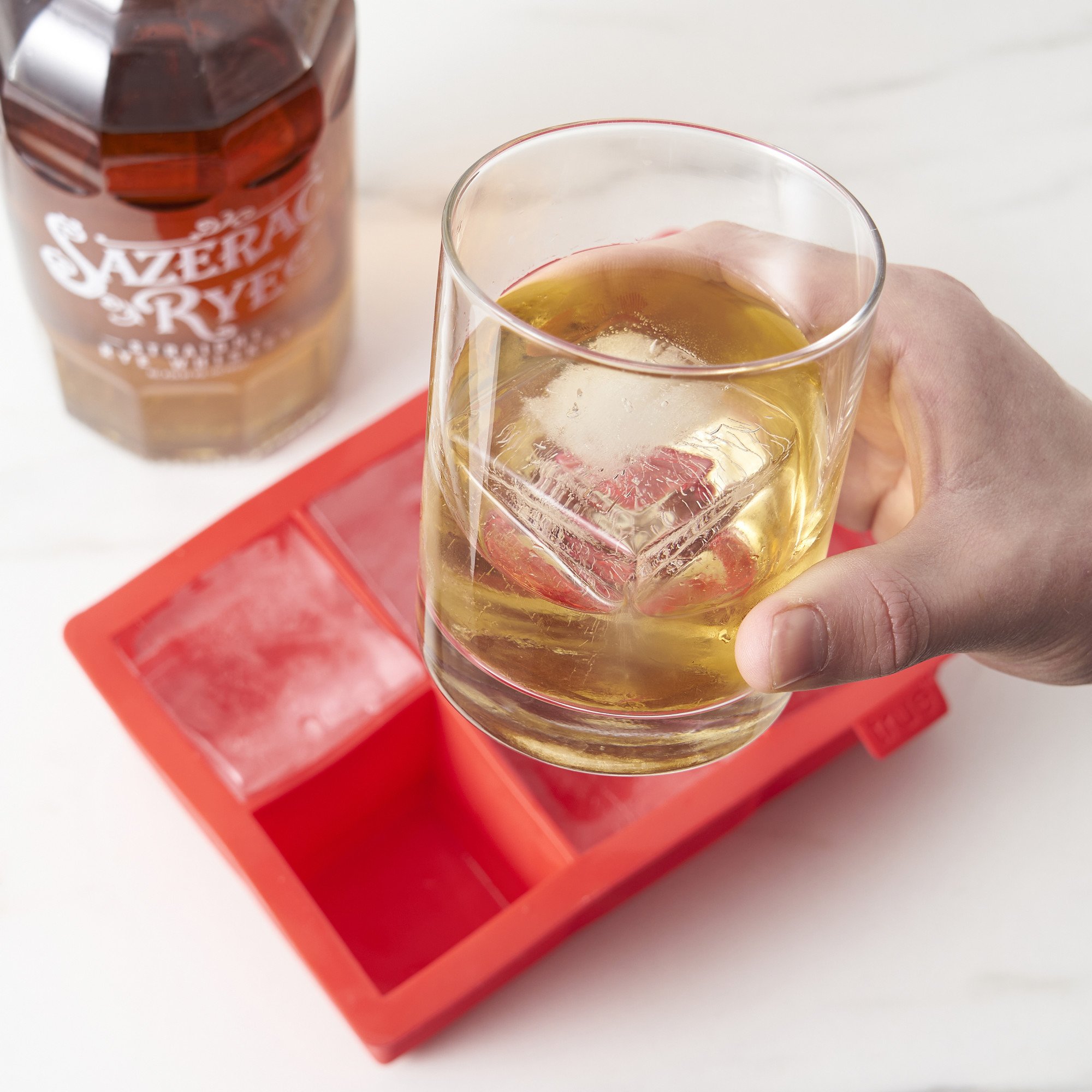 This silicone ice cube tray makes six large 2” cubes that melt slowly, keeping your drinks colder for longer with minimal dilution. Perfect for whiskey, bourbon, Old Fashioneds and other cocktails, these generously sized cubes are ideal for any beverage. Made from food-safe, BPA-free silicone, this tray is flexible for easy ice release and dishwasher safe for effortless cleaning.