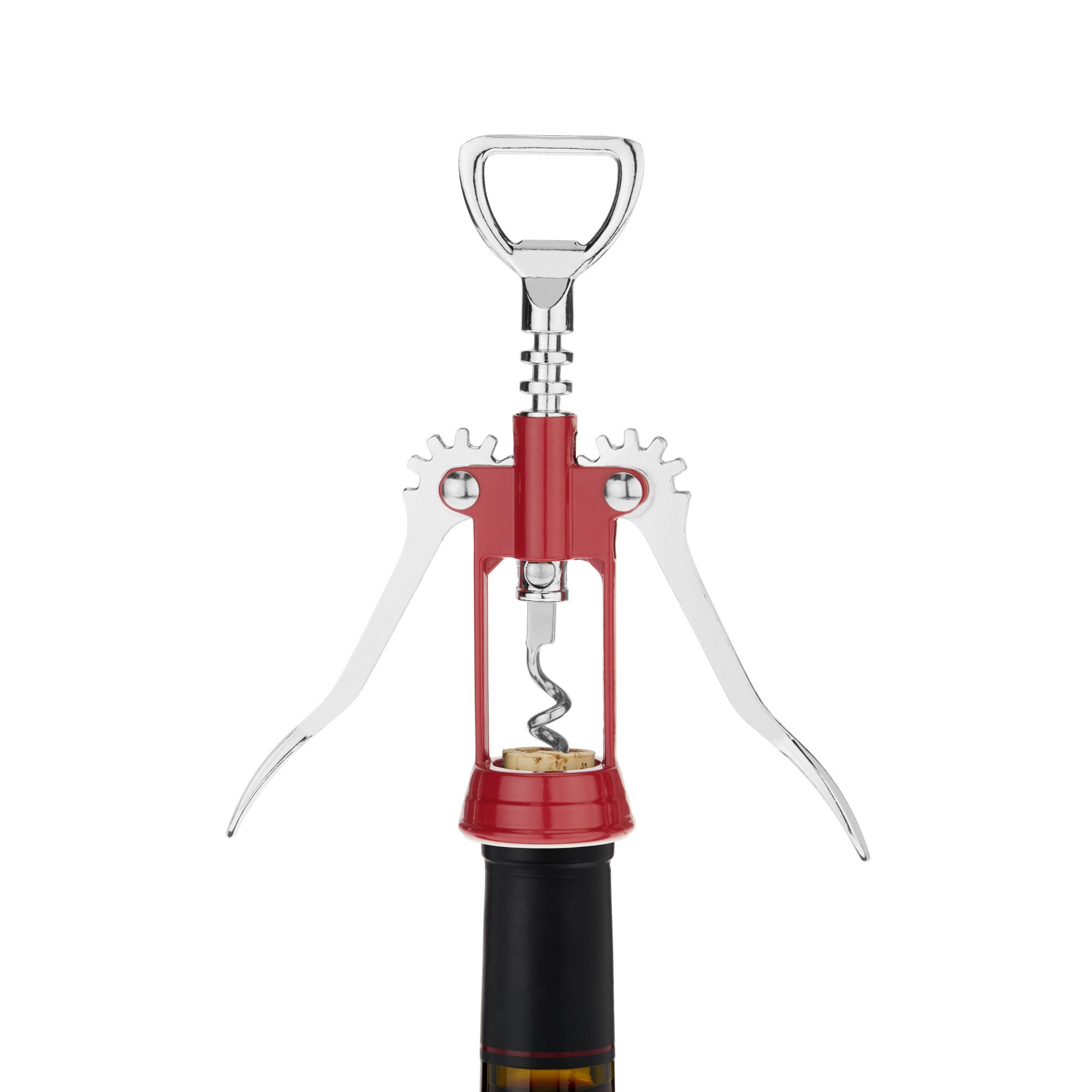 Fast and foolproof, the winged corkscrew is a classic for a reason. Our version features a classy chrome finish, self-centering worm and built-in bottle opener. What can we say? It’s pretty fly. All metal construction Lever arms Integrated bottle opener