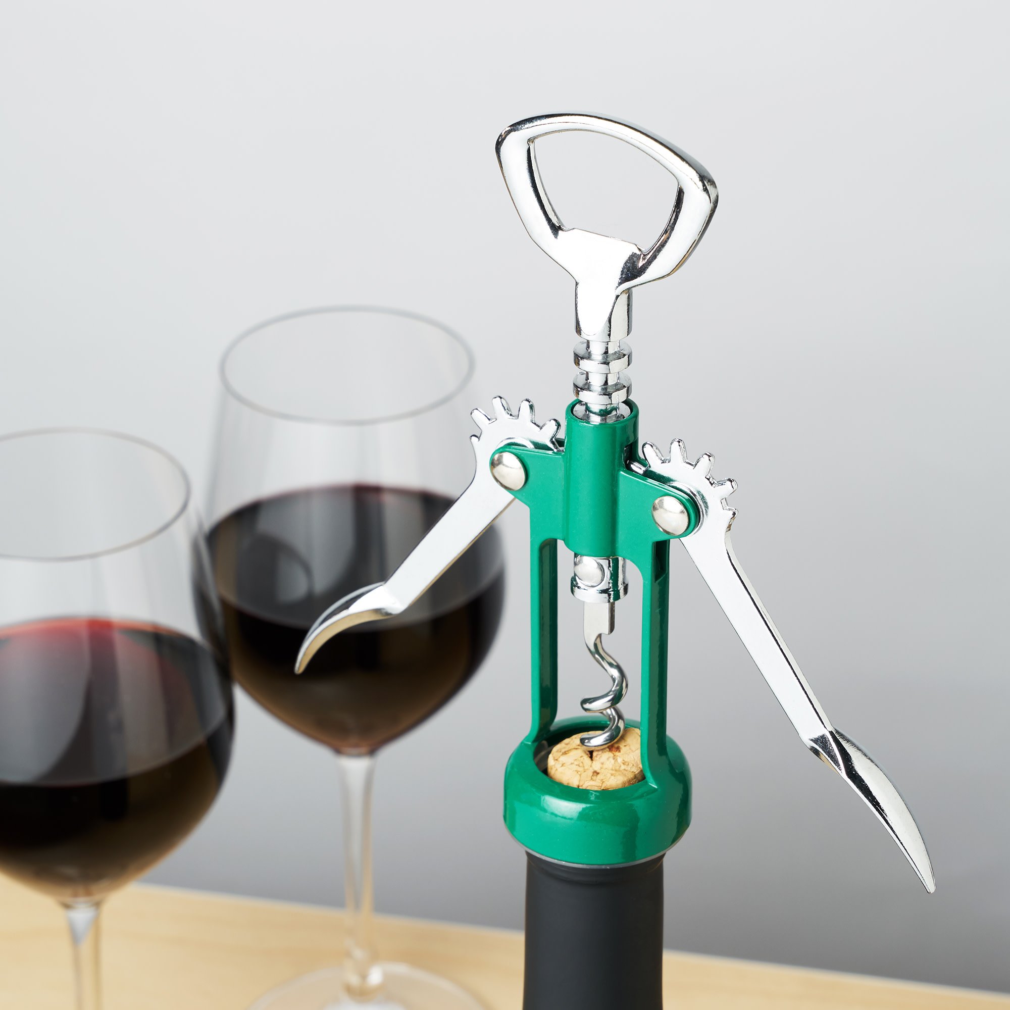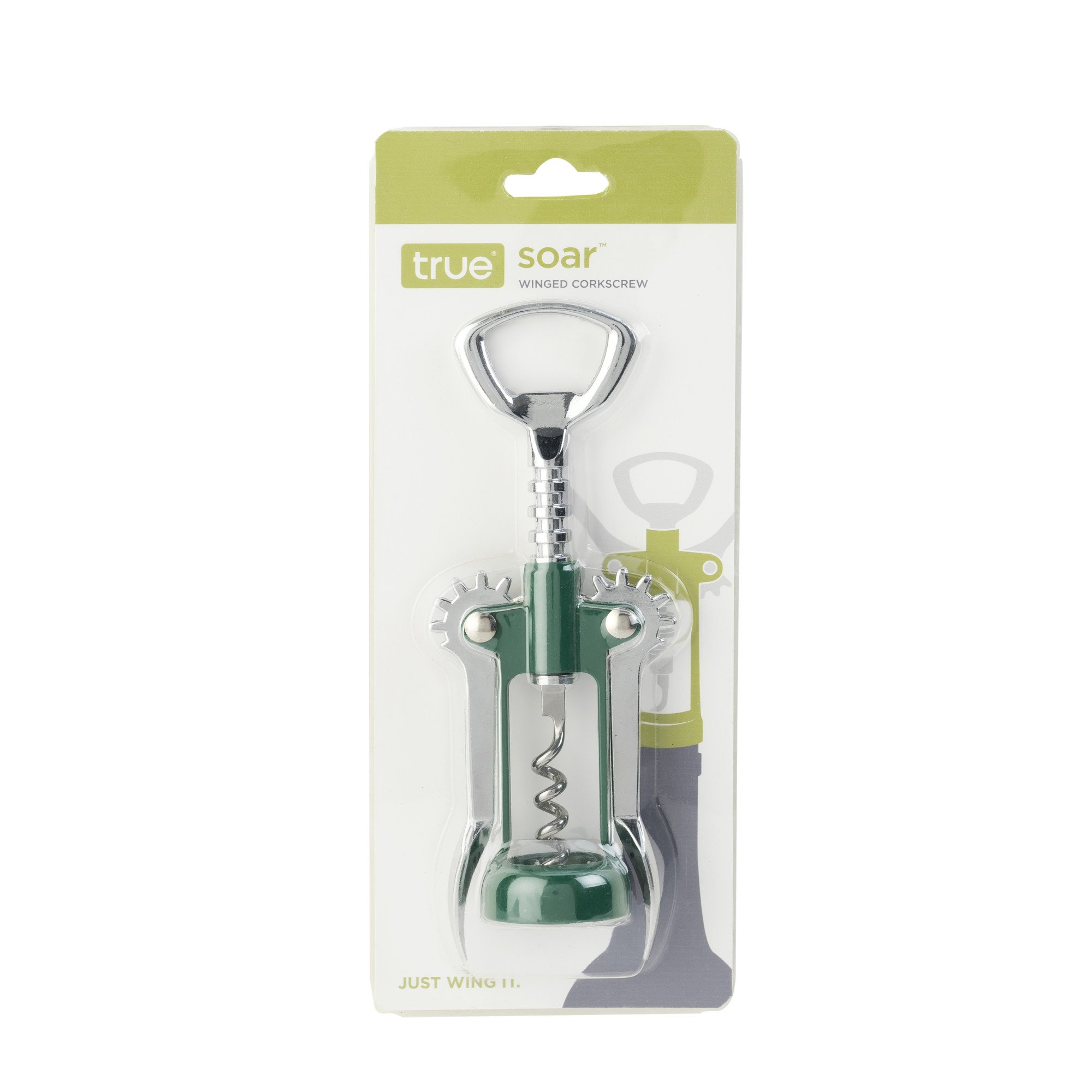 Fast and foolproof, the winged corkscrew is a classic for a reason. Our Soar™ Green Winged Corkscrew features a colorful purple finish, self-centering worm and built-in bottle opener. Screw the corkscrew into the cork and then press down the lever arms to remove the cork in one easy motion. What can we say? It’s pretty fly. All metal construction Lever arms Integrated bottle opener