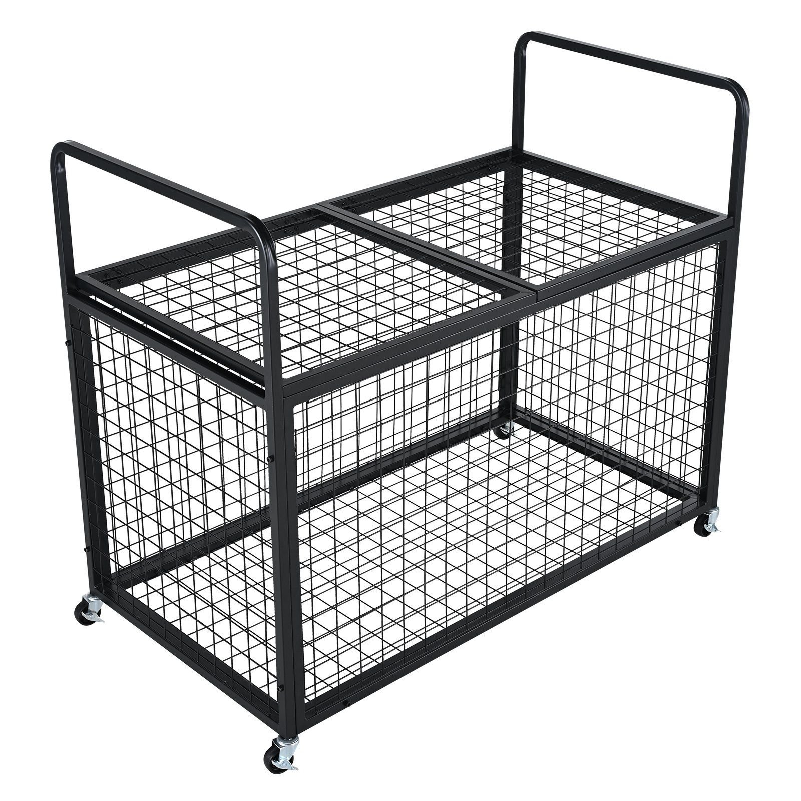 This sports equipment storage organizer features 4 swivel wheels with brakes, enabling easy mobility to any location. The wheels allow users to secure the cart with ease, enhancing the stability and safety of the cage.