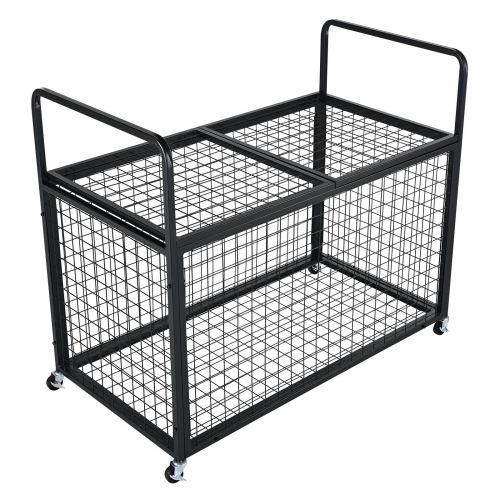 The garage organizer sport cart is made of high-quality carbon steel, which offers excellent strength and hardness, enabling it to withstand substantial loads and weight. It also boasts good corrosion resistance and rust resistance, with a painted surface to maintain the cart's appearance.