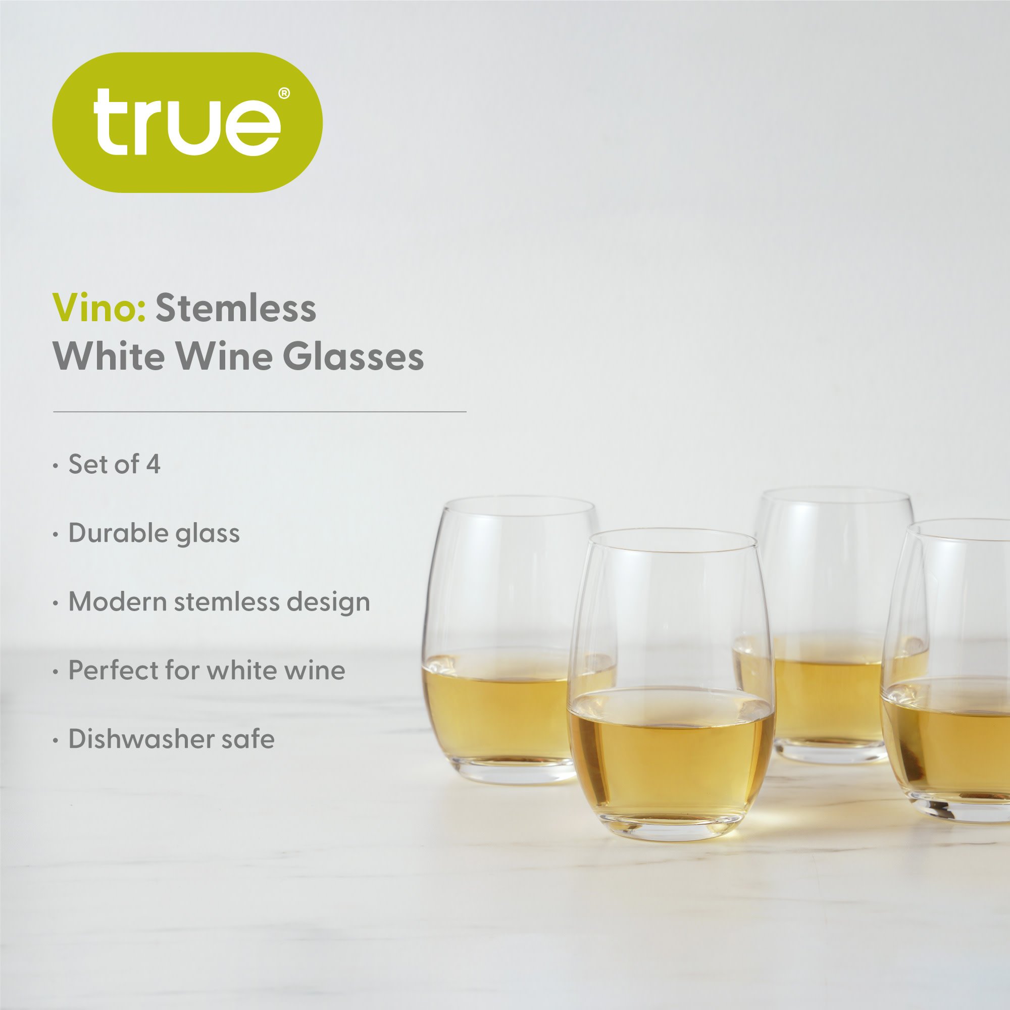Vino Stemless White Wine Glass by True set of 4